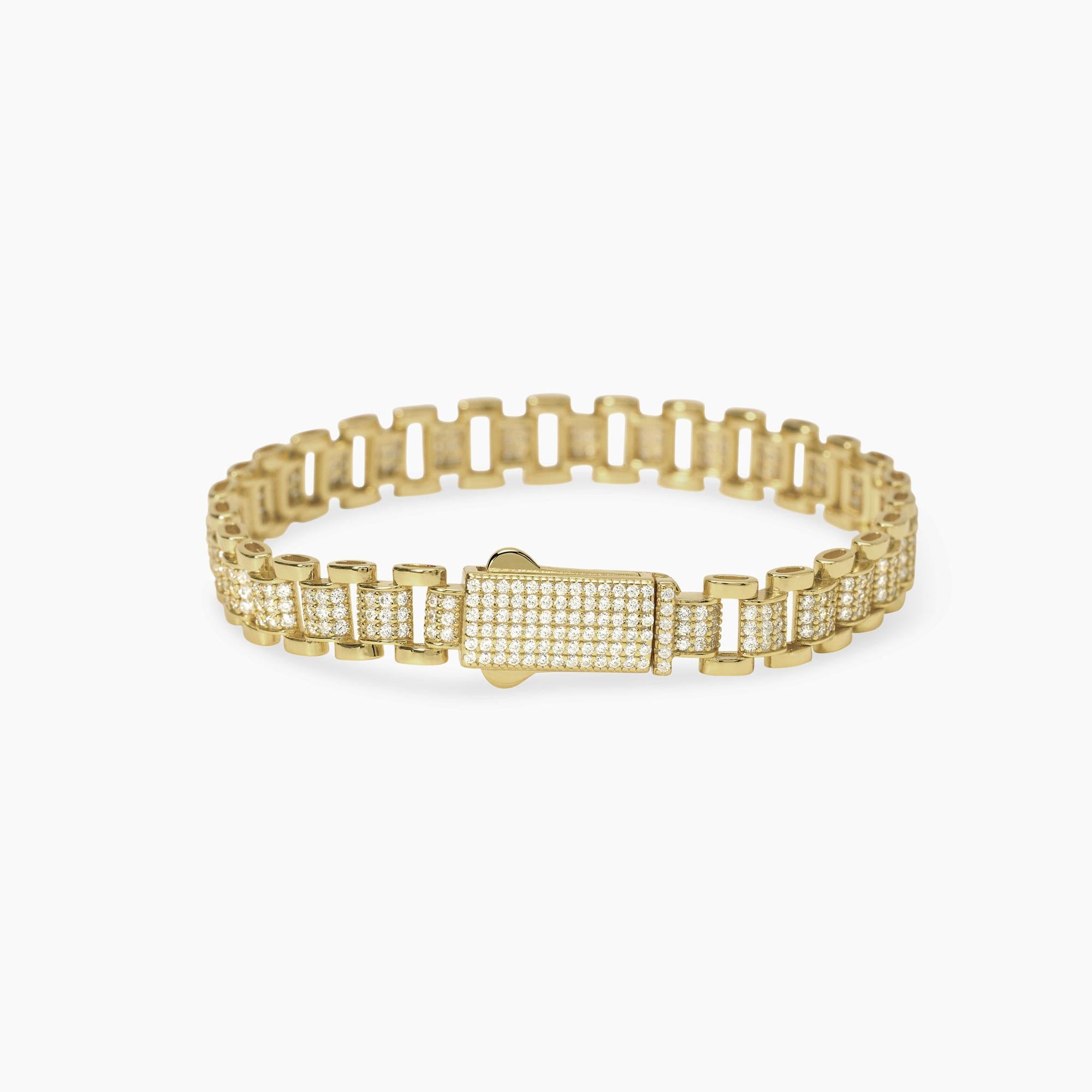 Bracciale in argento placcato oro 18K con elementi imperniati e zirconi.