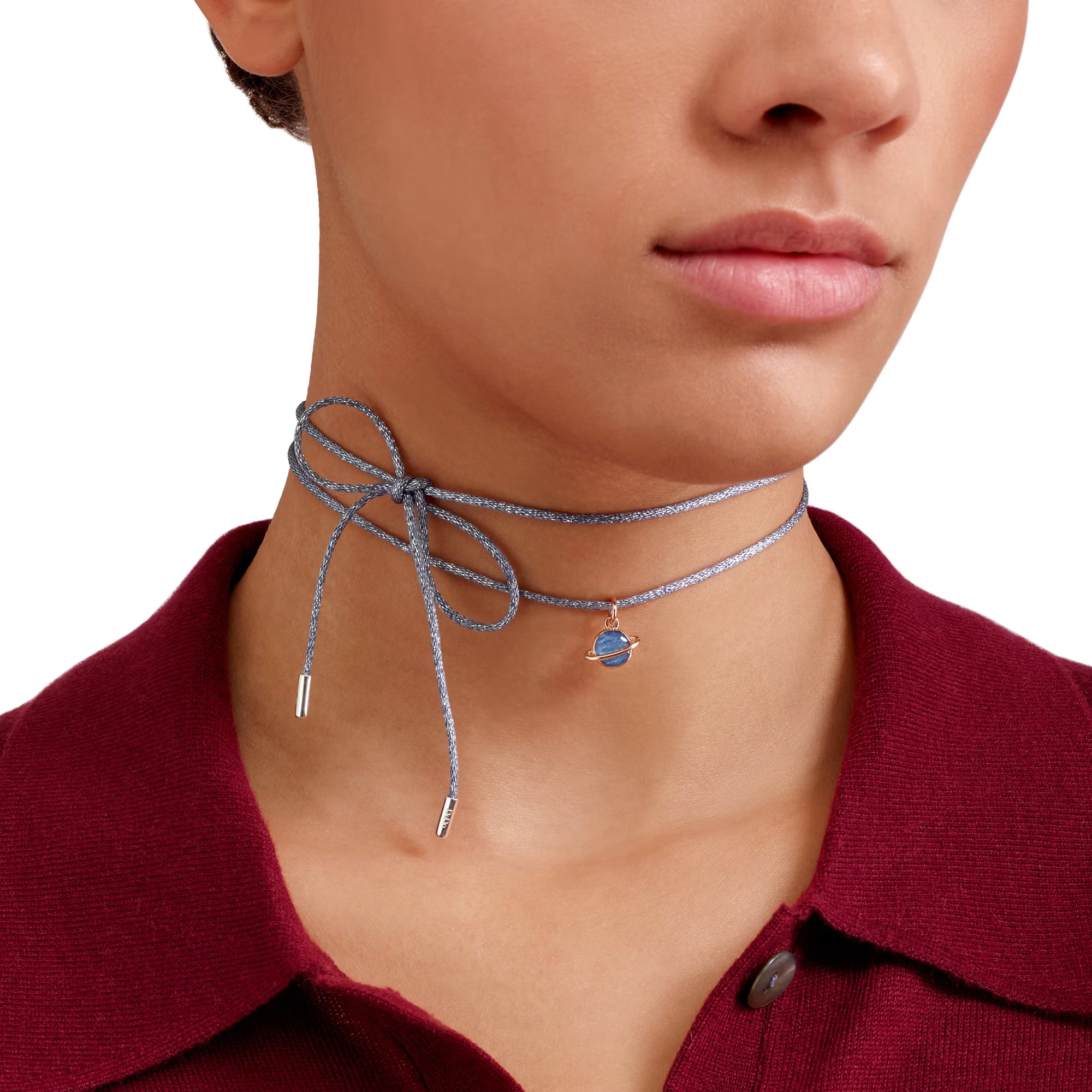 Ciondolo pianeta in oro rosa 9K e smalto glitterato blu. Cordino nero incluso.
