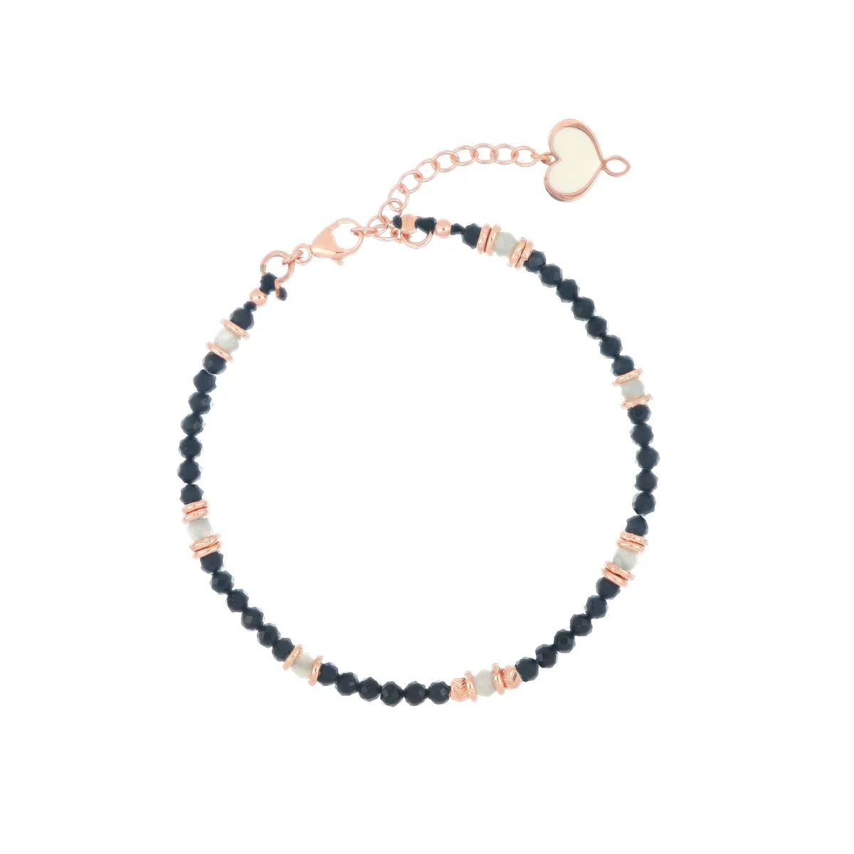 Bracciale da donna Maman et Sophie ref. BRISF2SPMP in argento 925‰ placcato oro rosa realizzato con pietre di spinello e madreperla alternate a sfere di 3 mm. All'estremità del bracciale troviamo il cuore Maman traforato. Lunghezza regolabile da 18 a 22 cm. Chiusura a moschettone.