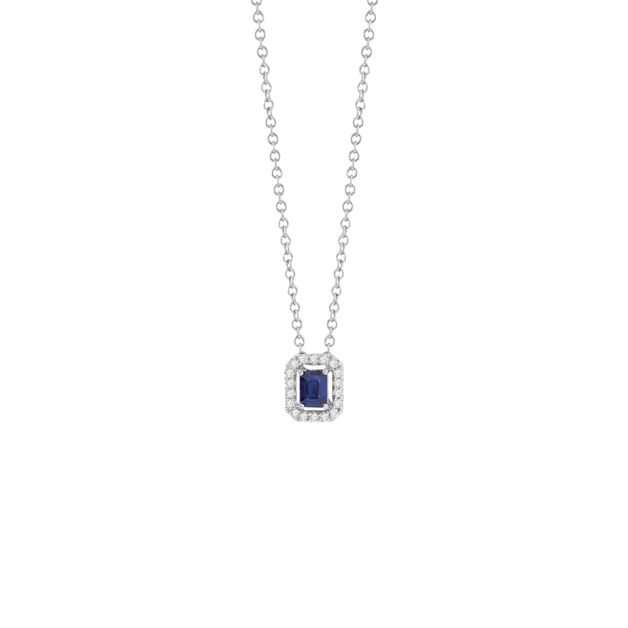 Girocollo in oro bianco 750 diamanti taglio brillante ct 0.08 G e Zaffiro taglio smeraldo ct 0,25.