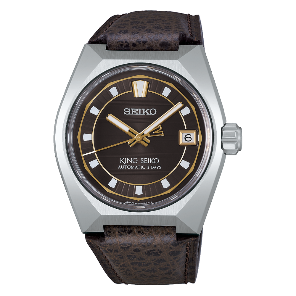 Tokyo Horizon: dove la metropoli incontra la natura La storica collezione King Seiko VANAC torna con un nuovo capitolo: per la prima volta sono disponibili modelli con cinturino in pelle, che aggiungono calore ed eleganza al design originale. Ispirata a Tokyo e al concept Tokyo Horizon, la linea richiama l’armonia tra città e natura grazie a quadranti con tonalità terrose e vegetali. Il modello SLA093J1 presenta un ricco marrone, ispirato al legno e alla terra.