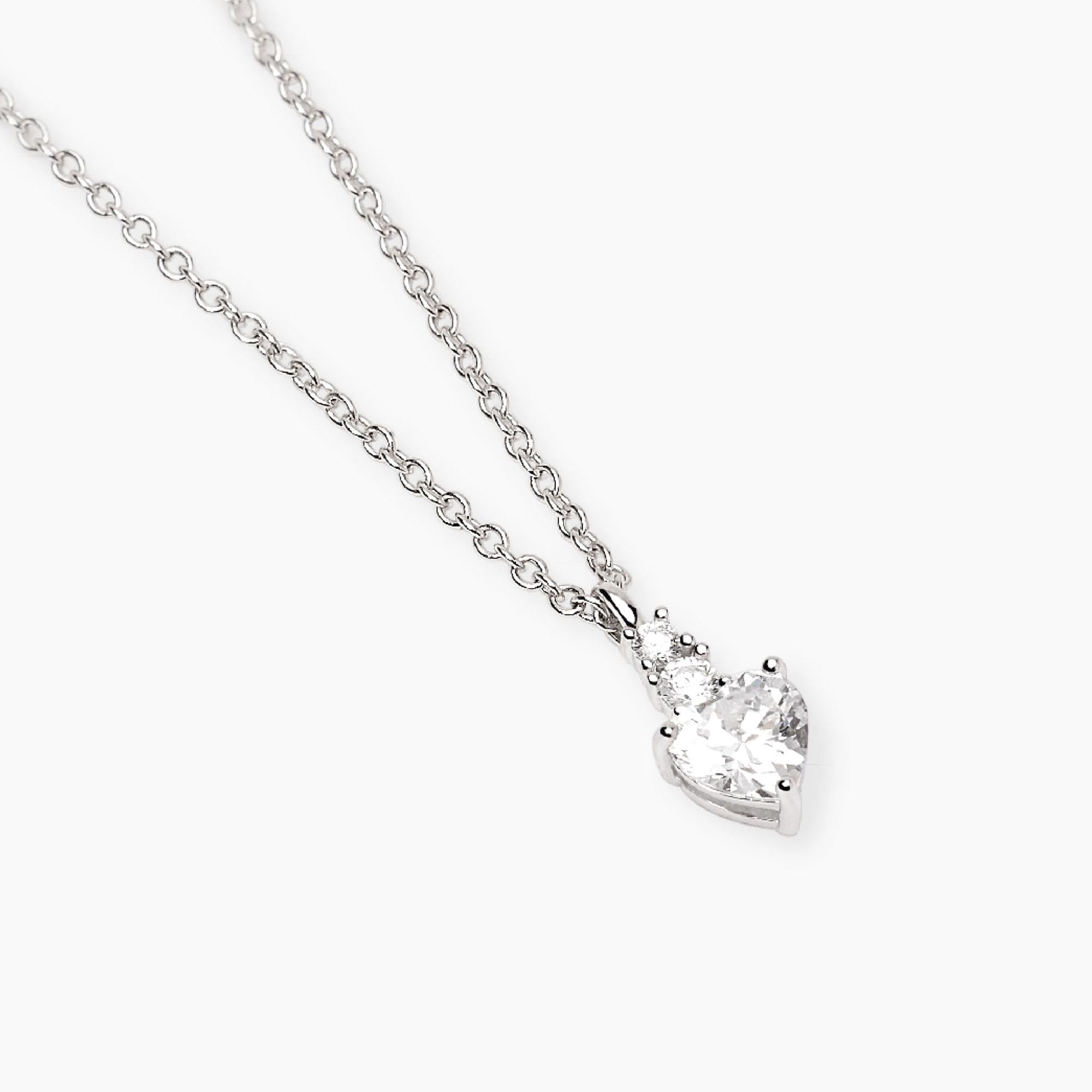Adjustable women's choker in rhodium-plated silver with forced chain and four-leaf clover-shaped pendant with heart-cut synthetic emeralds and zircon.