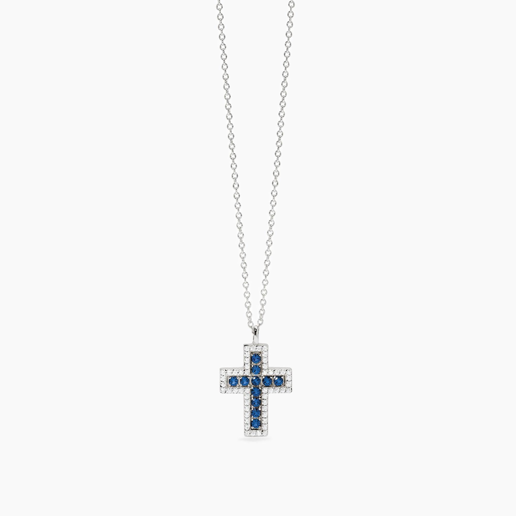 Adjustable women's choker in rhodium-plated silver with forced chain and four-leaf clover-shaped pendant with heart-cut synthetic emeralds and zircon.